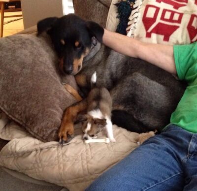 My sweet shadow and protector, Gemma. With the ears that never stood up, paws so hairy we called you grinch feet, and from above you looked like a little loaf of bread. You were so loved, and are so missed. You’re with your beloved big dog, Jake now. He was always so gentle with you❤️